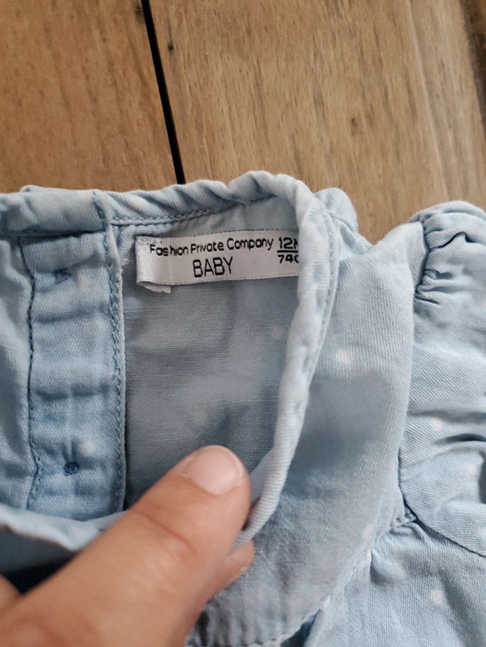 Robe à pois bleu et blanche taille 12 mois