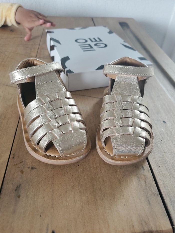 Sandale en cuir doré gemo taille 20 porte une fois juste un petit défaut sur l'avant de la chaussure.