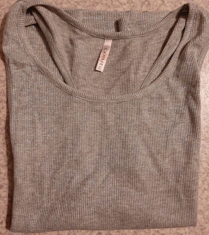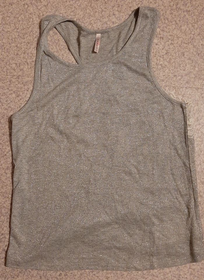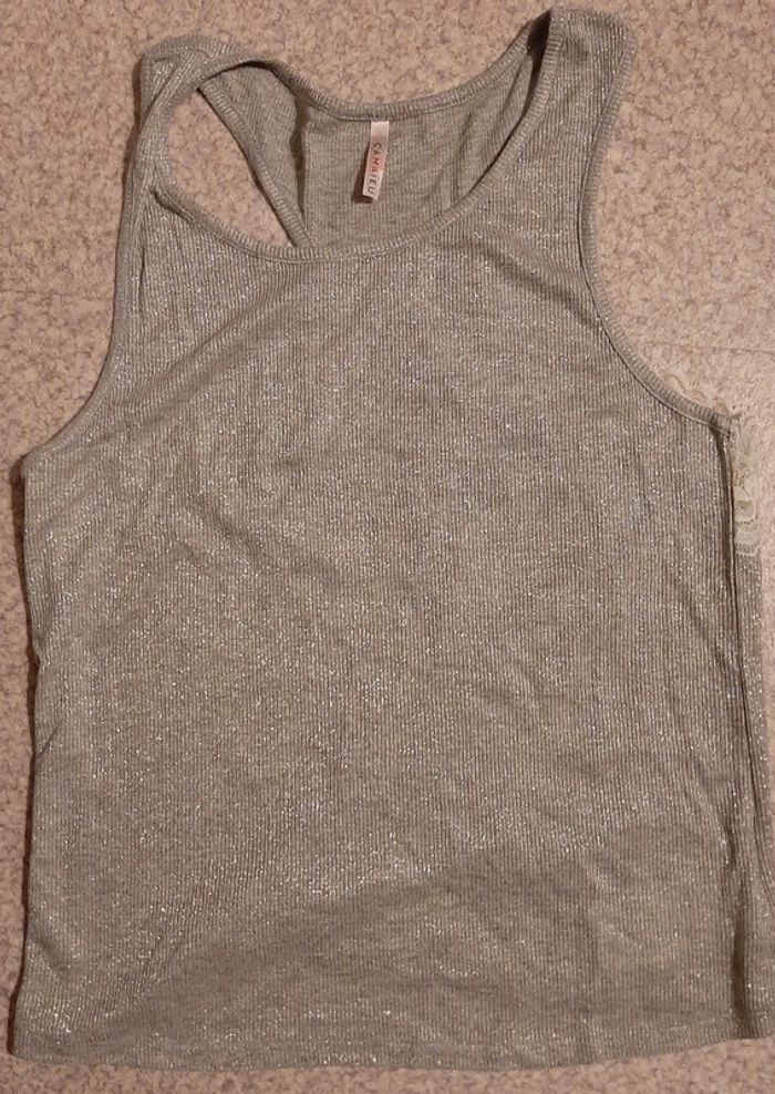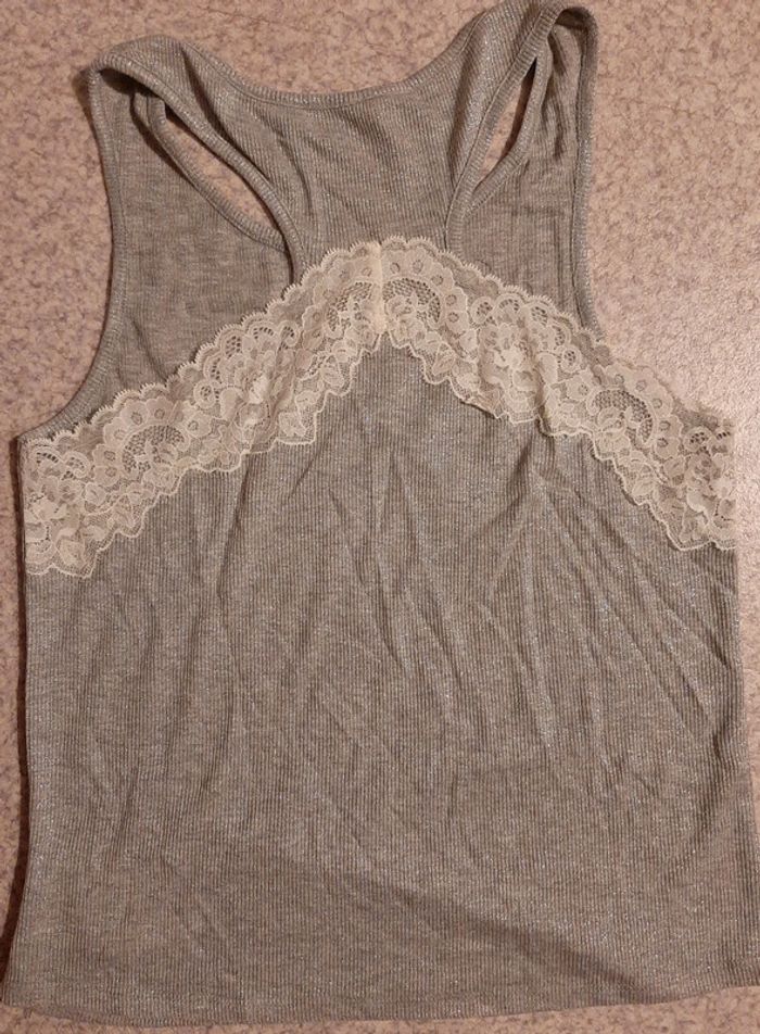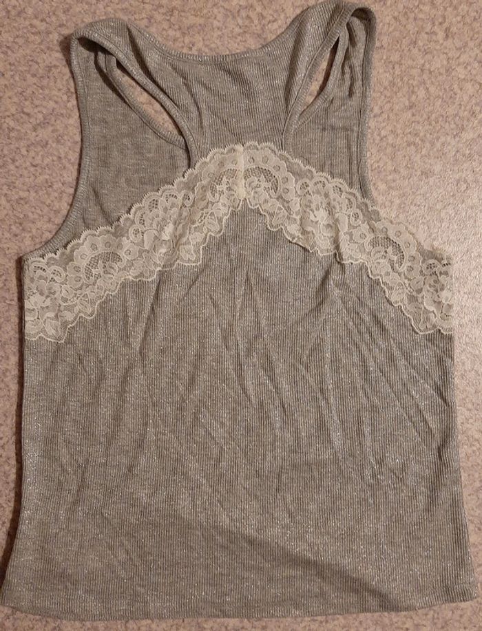 De couleur gris, débardeur à paillettes, avec de la dentelle au dos. Neuf jamais porté. Marque camaïeu. N'hésitez pas à aller faire un tour dans mon dressing de nombreux autres vêtements à vendre à des tout petits prix et prix dégressif sur les lots 😉🌸