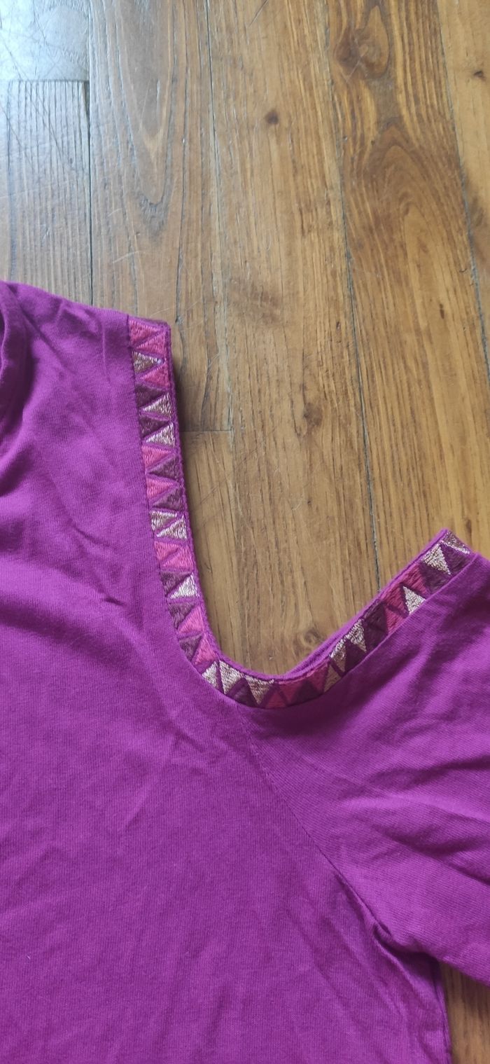 Joli haut ethnique violet épaules dénudées.
