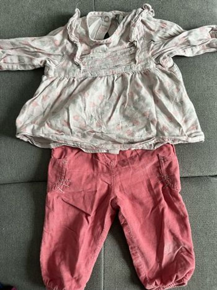 Ensemble marque Orchestra Pantalon en velours Chemisier à motif Très bon état #6moisbebefillemaevaL