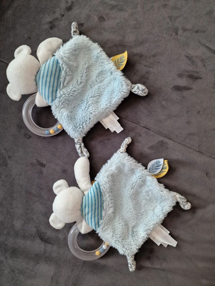 2 doudous peluche hochet Yoca le Koala NEUFS jamais choisis par bébé qui a préféré le gros modèle de cette série. Doudou et Compagnie Ne pas tenir compte des boîtes d'origine car j'ai retiré l'intérieur pour m'en servir de rangement...