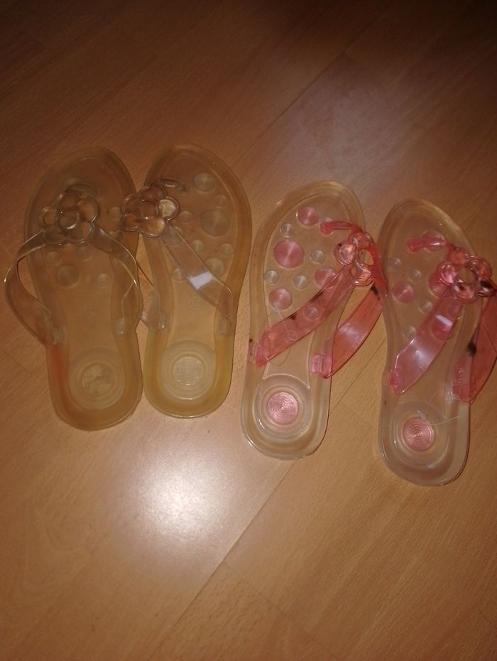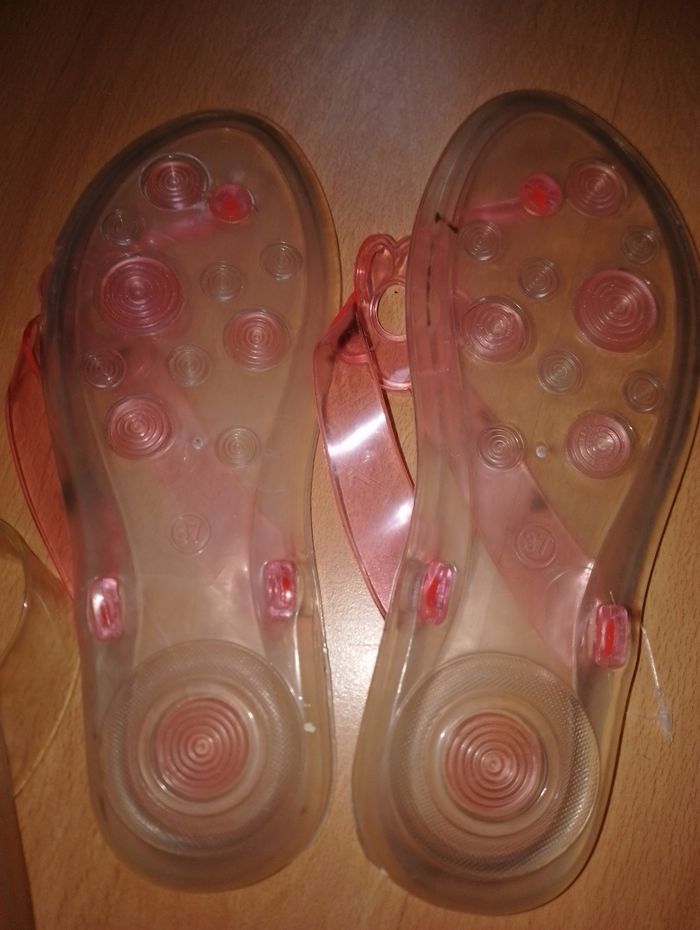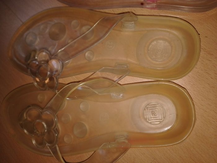 Tong Claquettes P.37 neuve #Transparente et rose Motif fleur Mais défaut de tâches 12 euro #Transparente motif fleur très peu mise 8 euro