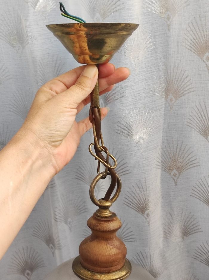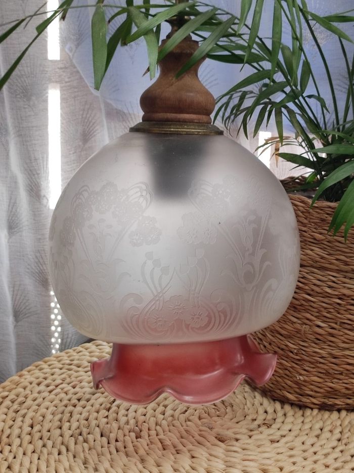 Duo de suspension très ancien datant des années 60/70 en verre. Globe en forme de tulipes, le goulot est a nettoyer ( si vous êtes patient) ou a changer (si vous êtes bricoleur). Un Envoi est possible mais il est préférable d'une remise en main propre dû a sa fragilité.
