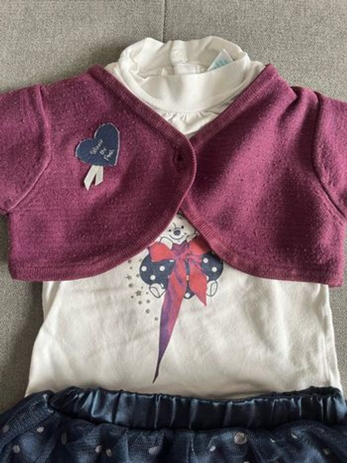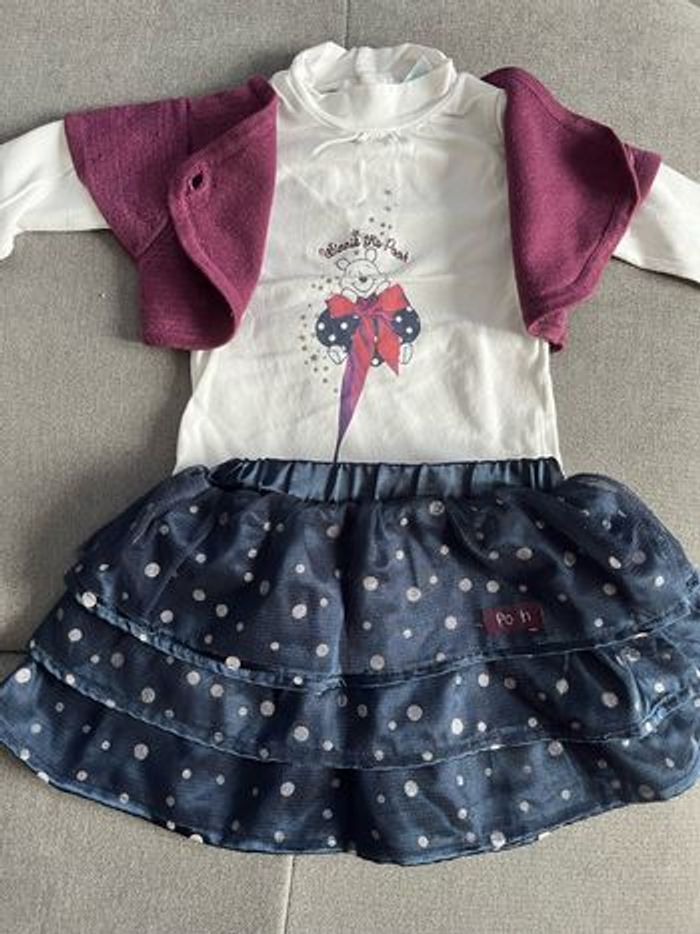 Ensemble Winnie l’ourson T-shirt avec petit gilet + jupe avec tulles Marque Disney baby Très bon état #6moisbebefillemaevaL