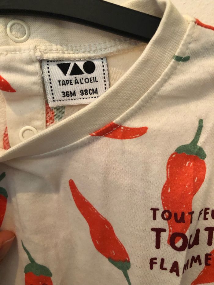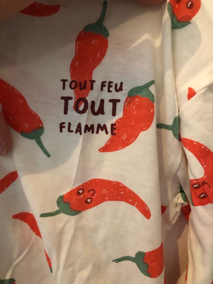 Pull manche longue avec des dessins de piments Taille 36 mois porté à quelques reprises Collection Février 2024