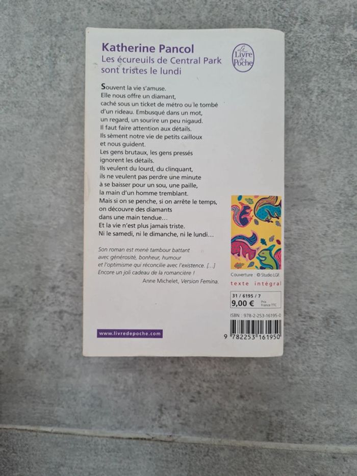Livre de poche Les écureuils de Central Park sont tristes le lundi de Katherine Pancol. Excellent état. Autres livres de la trilogie dans mon dressing. Maison non fumeur
