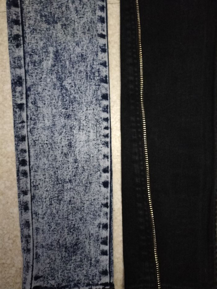 2 jeans femme ou fille Très bon état - jeans noir Motif fermeture éclair Très bon état Taille 36 Marque Léa lauryl Tour de taille 72 cm - jeans bleu Très bon état Taille 36 Marque miss rj Tour de taille 72 cm Le lot 8€