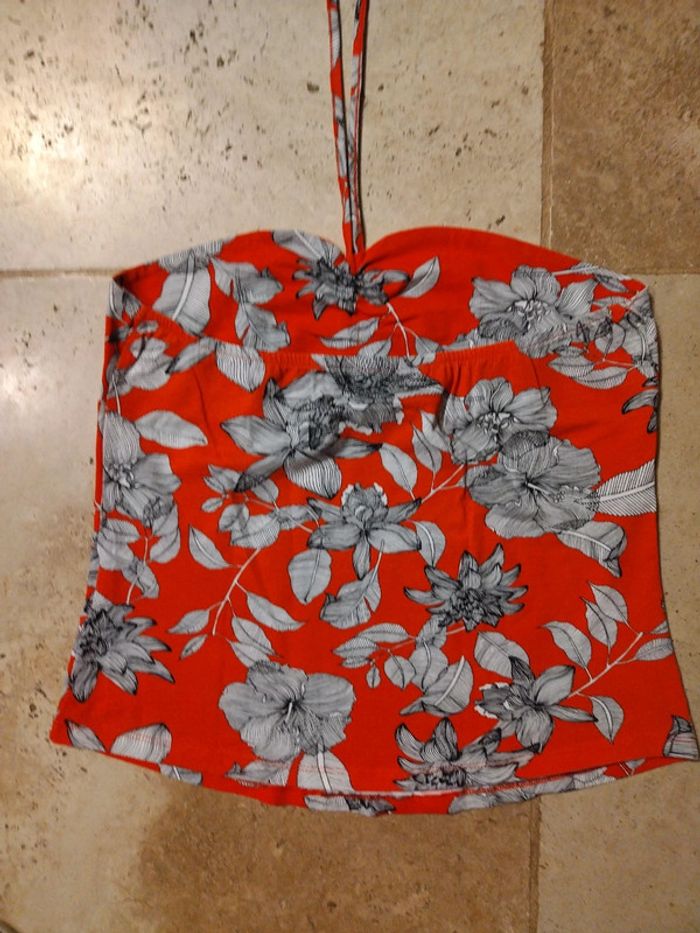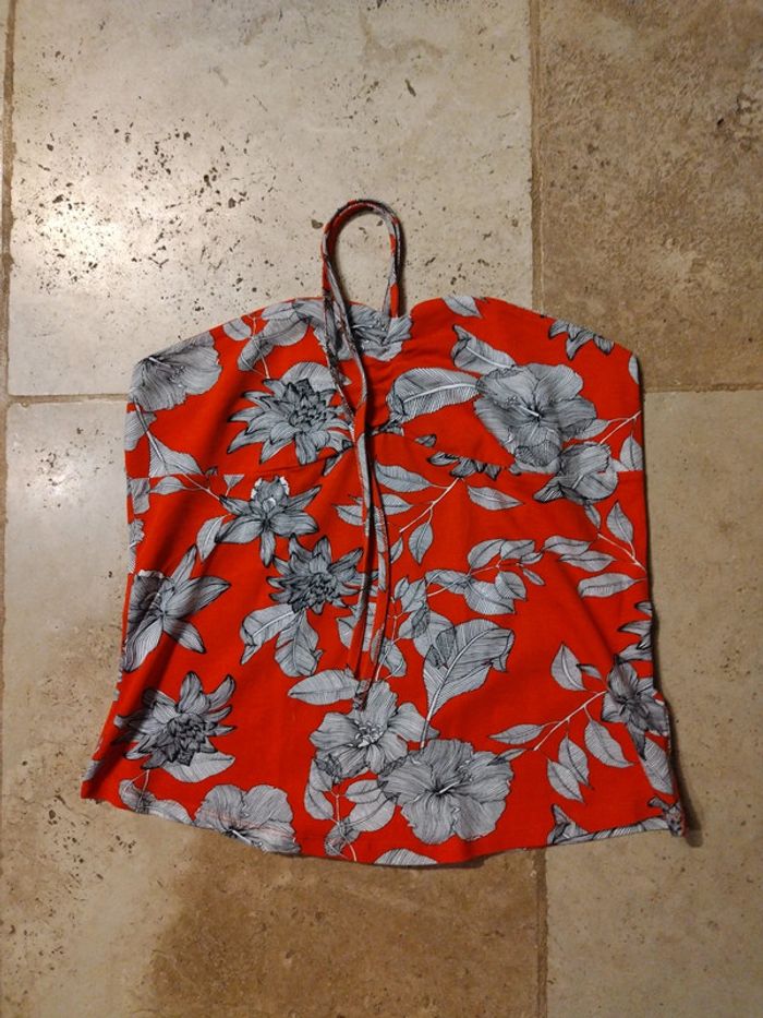 Étiquette de taille coupée. Il mesure 40 cm de haut en bas et 38 cm de gauche à droite sous la poitrine. Il peut s'attacher autour du cou
