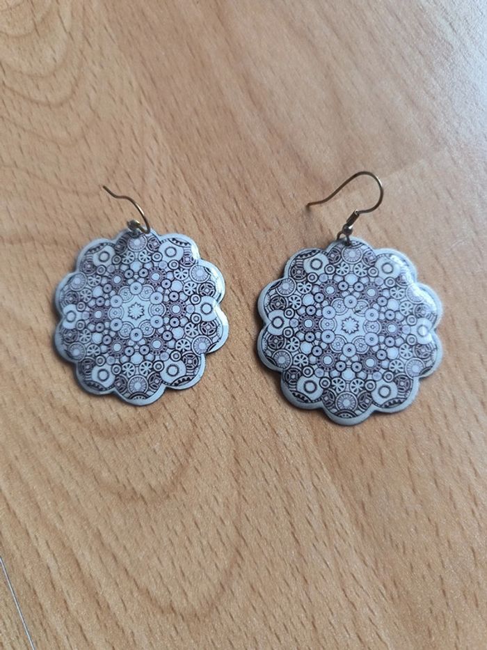 Boucles d'oreilles fantaisie gris-mauve - photo numéro 3