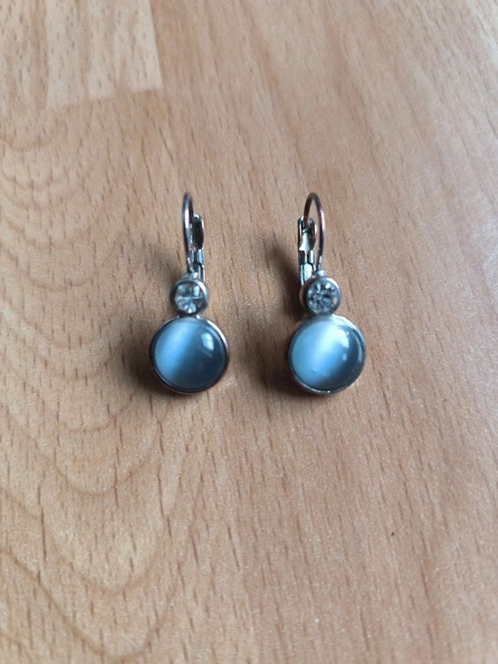 Boucles d'oreilles bleu-gris avec brillant - photo numéro 1