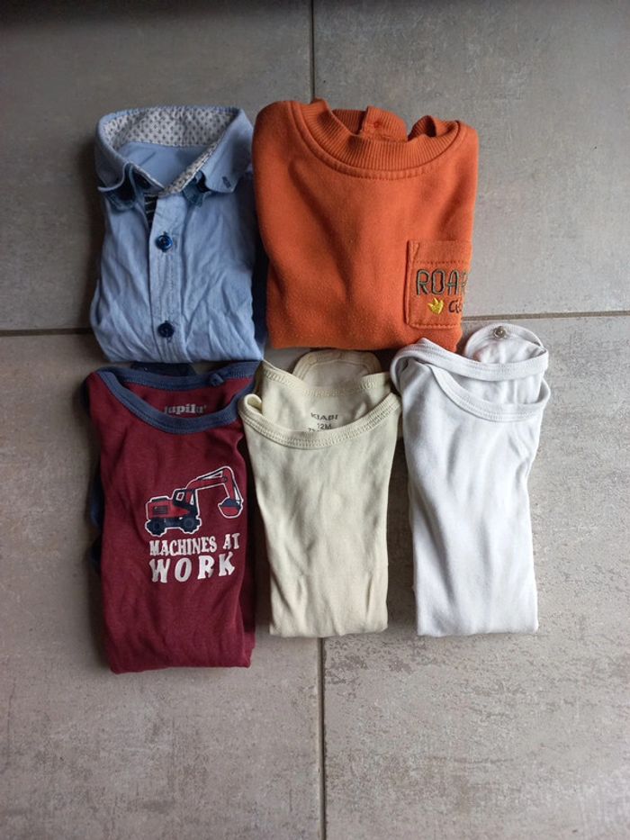 3 bodys (un 6/12 mois mais taille très grand), un pull et une chemise.
