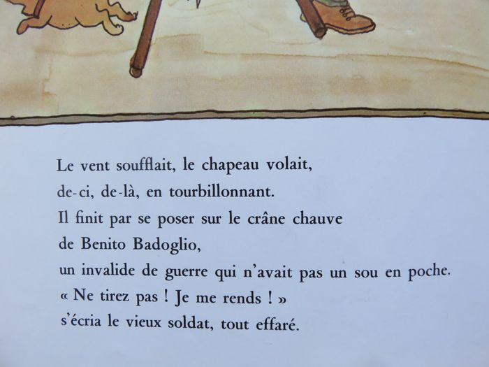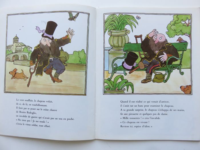 💰 PRIX FIXE ⚠️ ÉTAT : Très bon état ⚠️ DÉTAILS : Couverture souple ⚠️ RÉSUMÉ : Benito Badoglio était un invalide de guerre qui n'avait pas un sou en poche. Un jour, un chapeau qui volait de-ci, de-là, vint se poser sur son crâne chauve. Benito s'aperçut bientôt que ce chapeau était vivant. 📦 LIVRAISON : Envoi ou remise en main propre sur Lyon