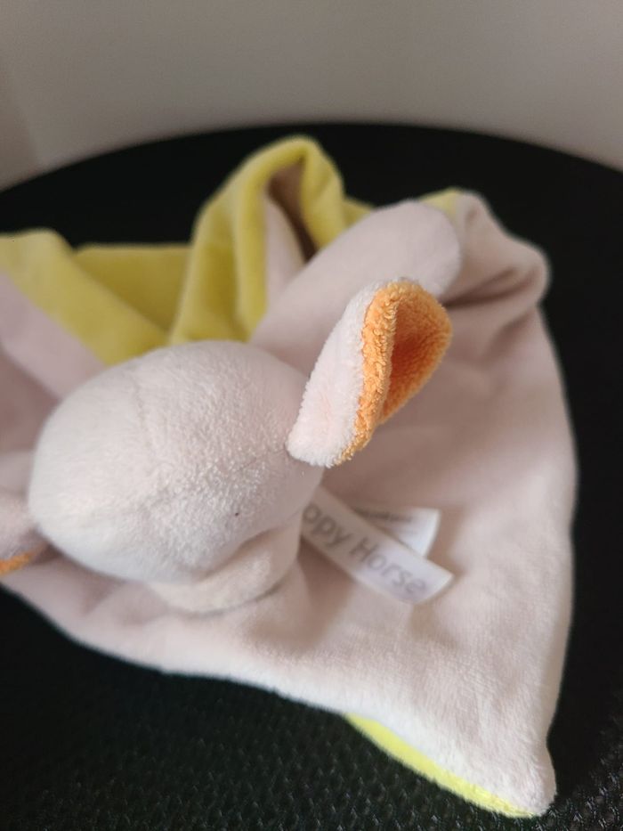 Doudou Cochon Plat Blanc Vert Orange Grelot HAPPY HORSE 130
