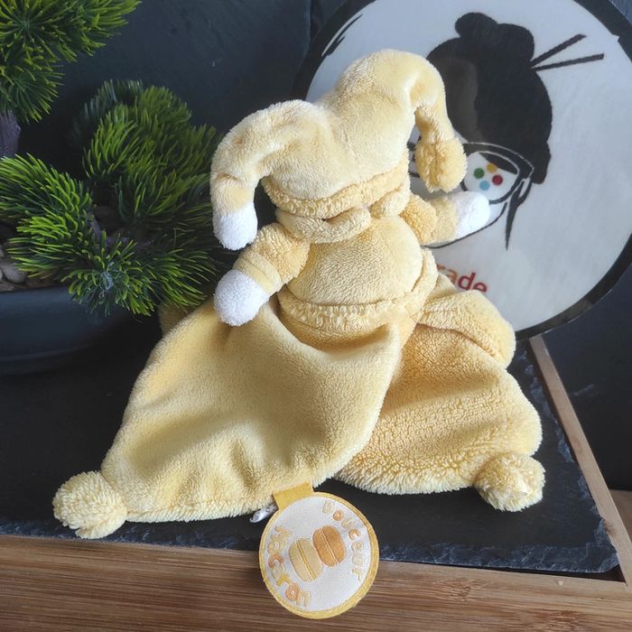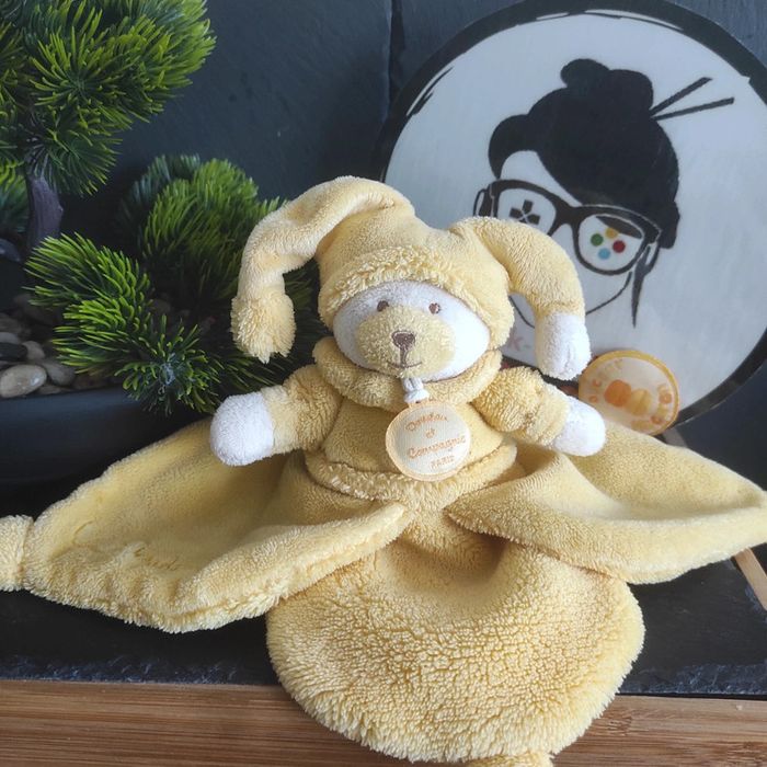 Doudou et compagnie plat ours jaune Douceur Macaron Fleur Bonnet Blanc Bon etat Afin de ne pas abîmer les doudous et de laisser le choix dans l'utilisation de la lessive les peluches ne sont pas lavées avant envoi Description complément : #geektradedoudouetcompagnie Petit nettoyage à prévoir Vous achetez ce que vous voyez les photos font entièrement partie de la description Transport : Les frais de transport comprennent les frais du transporteur ainsi que l'emballage pour protéger au mieux votre achat. Chaque achat est envoyé en format colis avec numéro de suivi Le poids du colis est de 500g finit (je ne peux pas faire moins) il peut donc y avoir plusieurs objets dans le carton si vous le souhaitez (contactez moi afinde grouper les frais de port) Référencement : #geektradedoudou #peluche #plush  #doudou #enfant #bebe