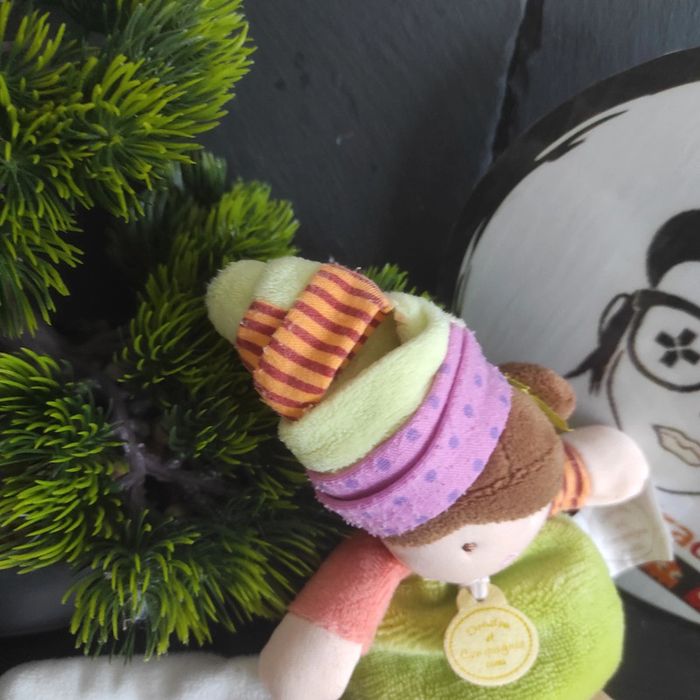 dc2770 doudou et compagnie les demoiselles cupcakes gateau mouchoir vert blanc Bon etat Je pense qu une partie du chapeau est décousu Bouloche sous les pieds Afin de ne pas abîmer les doudous et de laisser le choix dans l'utilisation de la lessive les peluches ne sont pas lavées avant envoi Description complément : #geektradedoudouetcompagnie Petit nettoyage à prévoir Vous achetez ce que vous voyez les photos font entièrement partie de la description Transport : Les frais de transport comprennent les frais du transporteur ainsi que l'emballage pour protéger au mieux votre achat. Chaque achat est envoyé en format colis avec numéro de suivi Le poids du colis est de 500g finit (je ne peux pas faire moins) il peut donc y avoir plusieurs objets dans le carton si vous le souhaitez (contactez moi afinde grouper les frais de port) Référencement : #geektradedoudou #peluche #plush  #doudou #enfant #bebe
