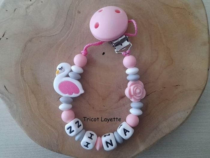 Attache tétine en silicone personnalisé au prénom de votre enfant (envoyez moi un message pour la personnalisation) Possibilité de rajouter un adaptateur en silicone pour les tétines Mam (+0,75€) (me contacter avant l'achat pour que je modifie le prix) Délais de fabrication et d'envoi : environ 3 jours (hors dimanche et jour férié) Les couleurs peuvent être changées à votre demande. L'attache tétine ne sera faites qu'une fois le paiement validé, une photo vous sera envoyée avant l'envoi du colis.
