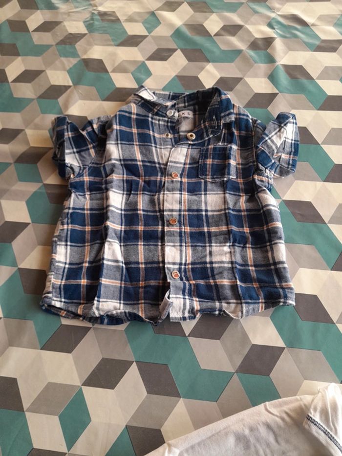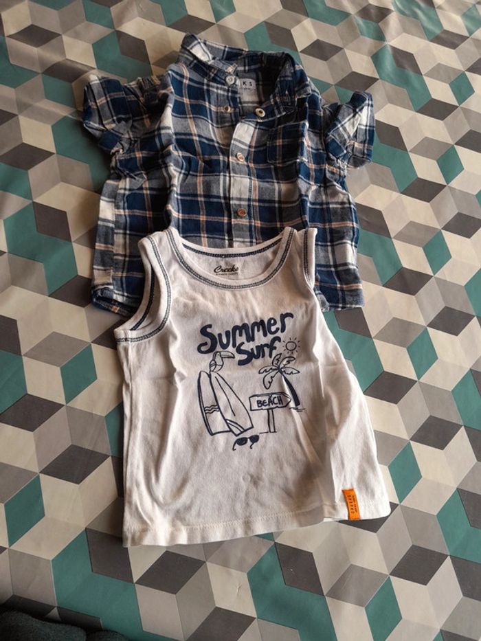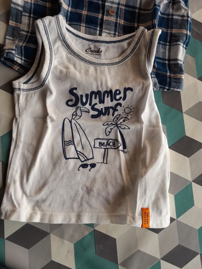 #bebeamandine2386 #9moisamandine2386 chemise manches courtes et débardeur Creeks 9 mois chemise à pressions