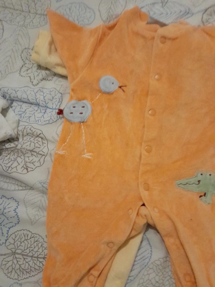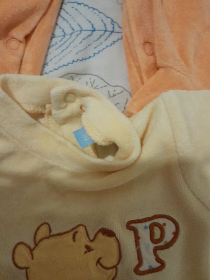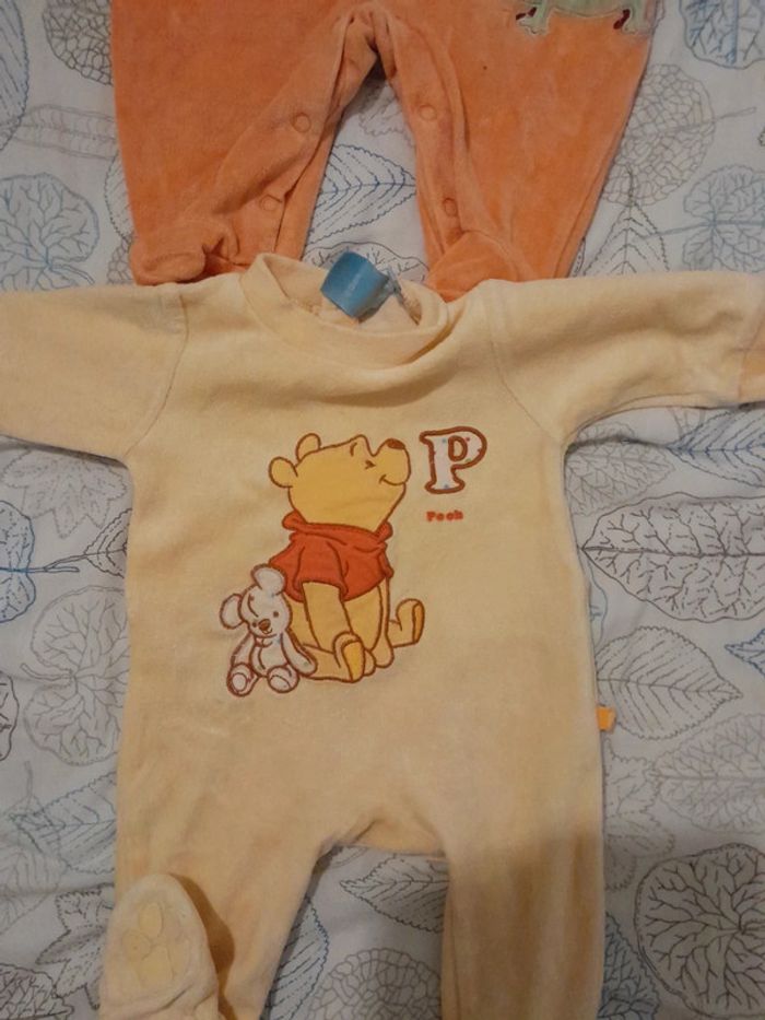 #bebeamandine2386 lot de 2 pyjamas velours 1 orange kiabi 1jaune winnie Disney baby très bon état