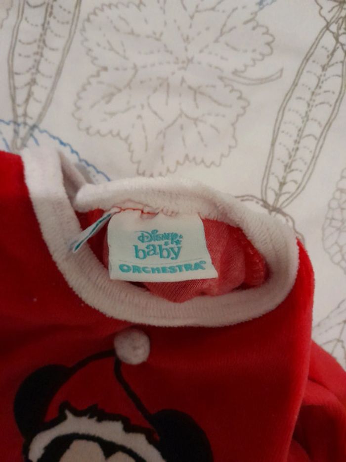 pyjama velours Mickey Noël 3mois orchestra très bon etat - photo numéro 3