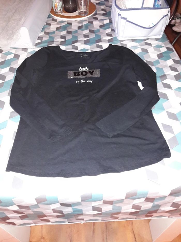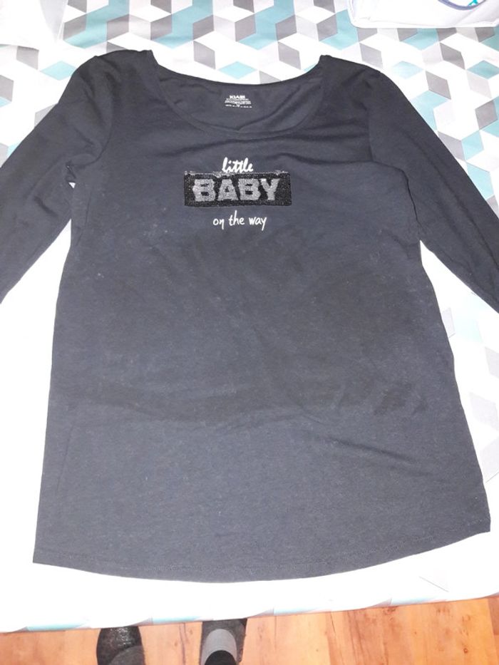 #grossesseamandine2386 Tee shirt manches longues noir Taille M Kiabi Tee shirt annonce Baby ou Boy Comme neuf Coton Juste lavé (Bébé est arrivé plus tôt)