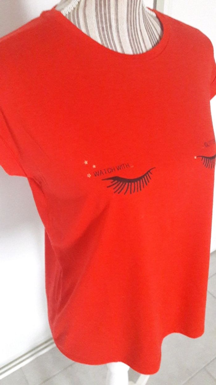 Tee shirt rouge motif cils Gémo S très bon état - photo numéro 5
