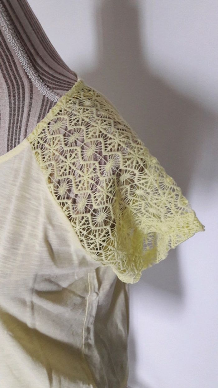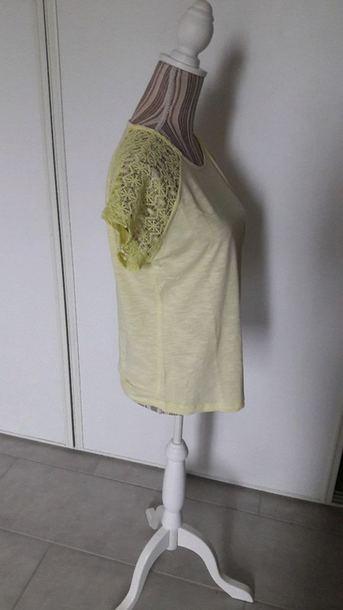 Tee shirt jaune et dentelle aux manches  Gémo L neuf - photo numéro 7