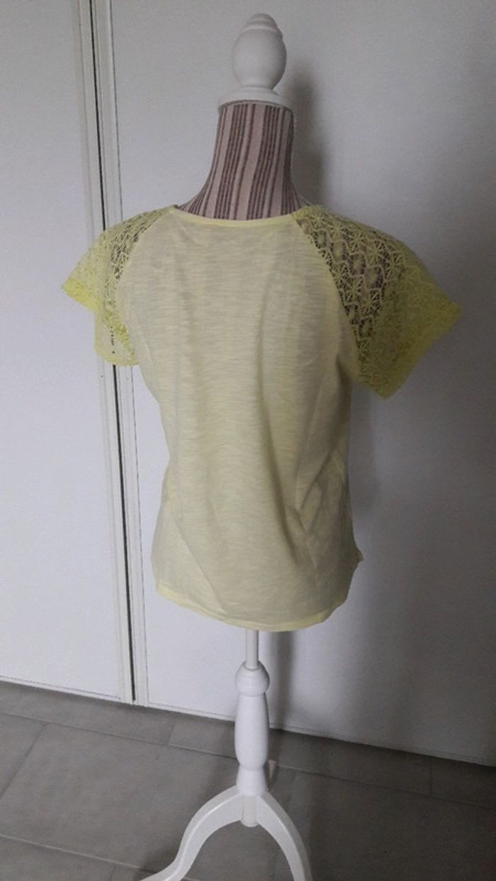 Tee shirt jaune et dentelle aux manches  Gémo L neuf - photo numéro 9