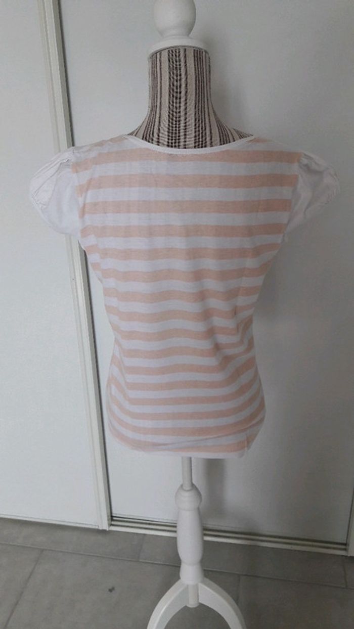 Tee shirt blanc motif fleurs et rayures abricot taille 3 tres bon état - photo numéro 6