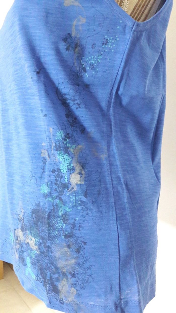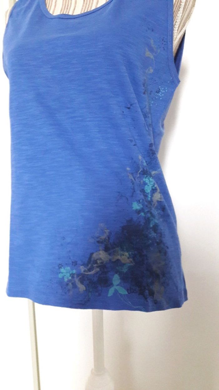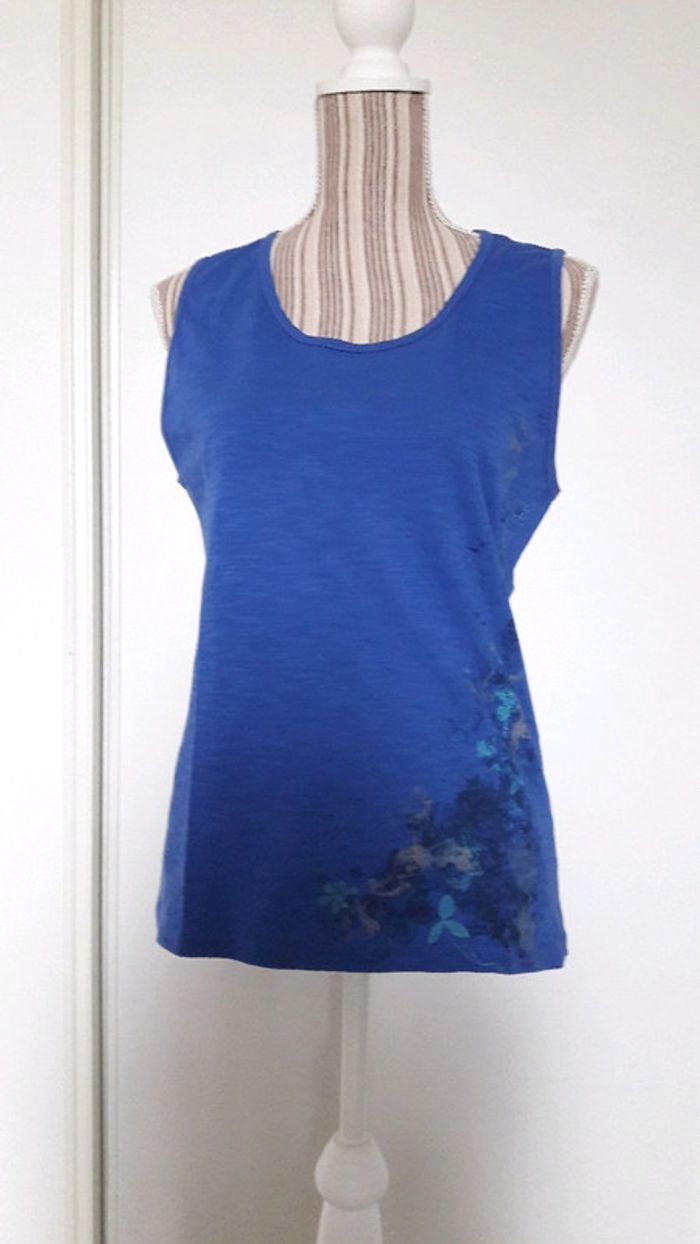 #44femmeamandine2386 #xxlfemmeamandine2386 Débardeur bleu avec motif sur le côté TBS Taille 44 Neuf sans etiquette
