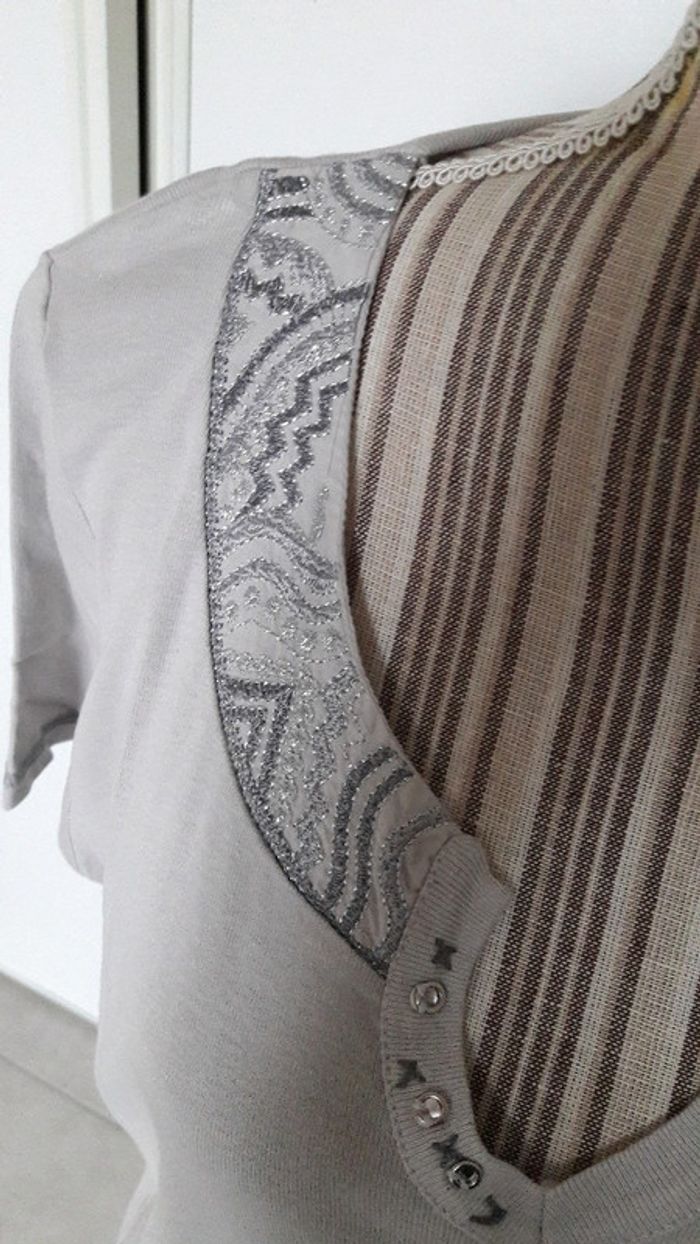 Tee shirt gris col fantaisi argente taille 3 bon état - photo numéro 6