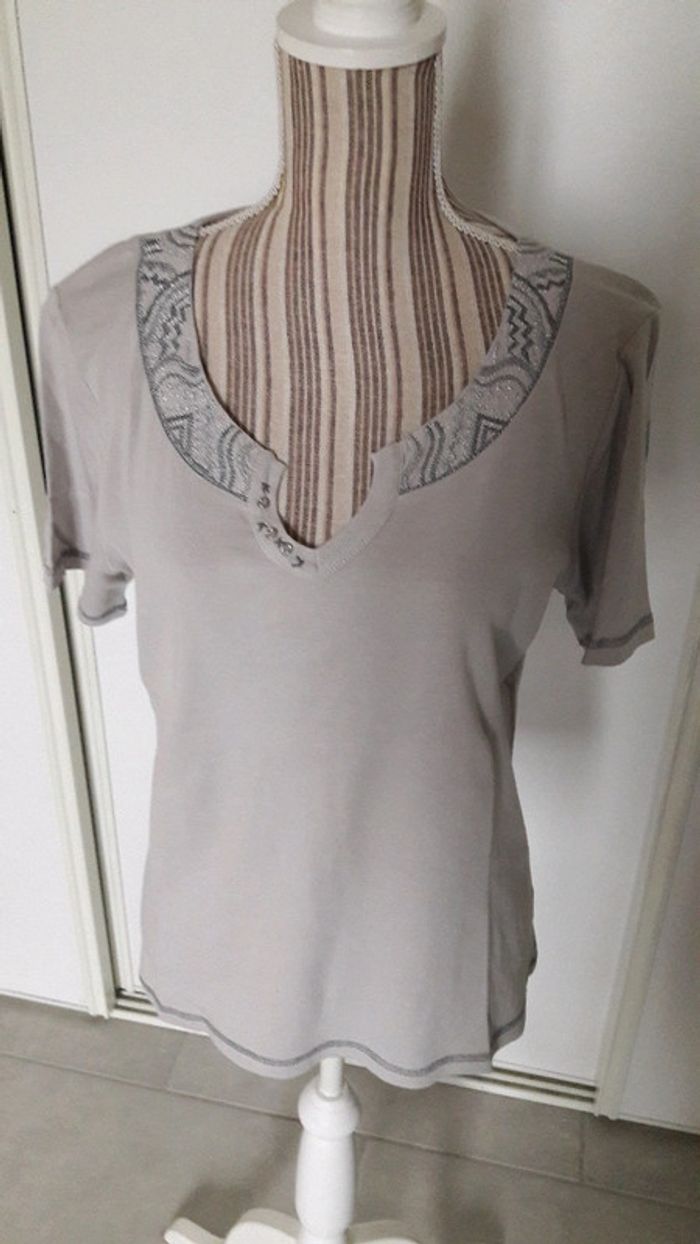 Tee shirt gris col fantaisi argente taille 3 bon état - photo numéro 1