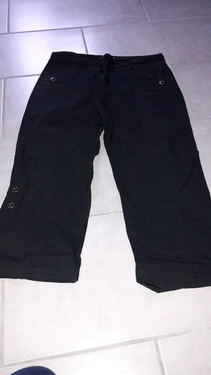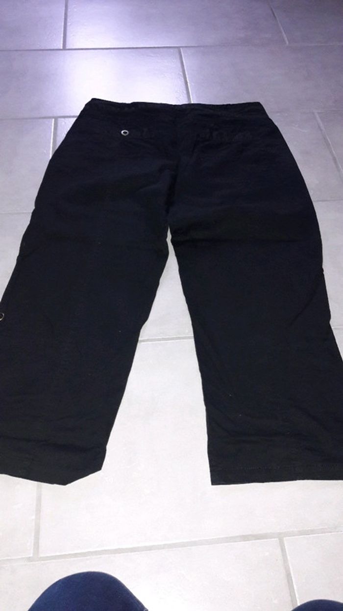#46femmeamandine2386 Pantacourt noir Coton Ici et maintenant Taille 46 Possibilité de le faire plus court avec système de pression visible sur photo En tres bon etat manque une pression à 1 poche arrière