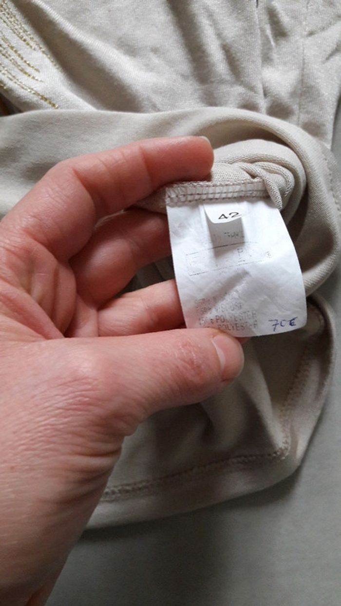 Tee shirt beige brillant t42 tres bon etat - photo numéro 5