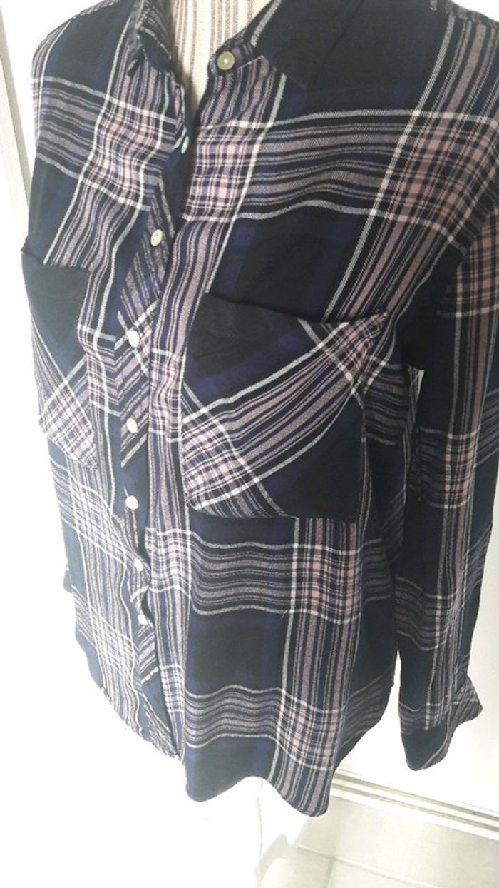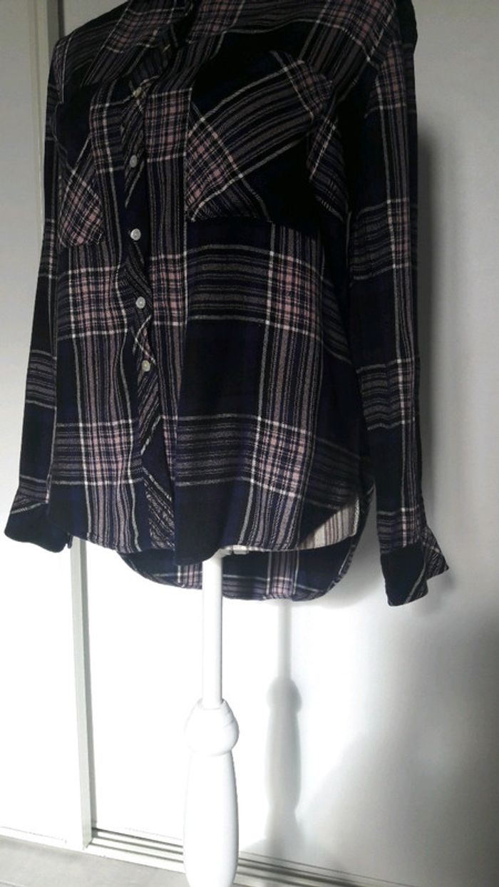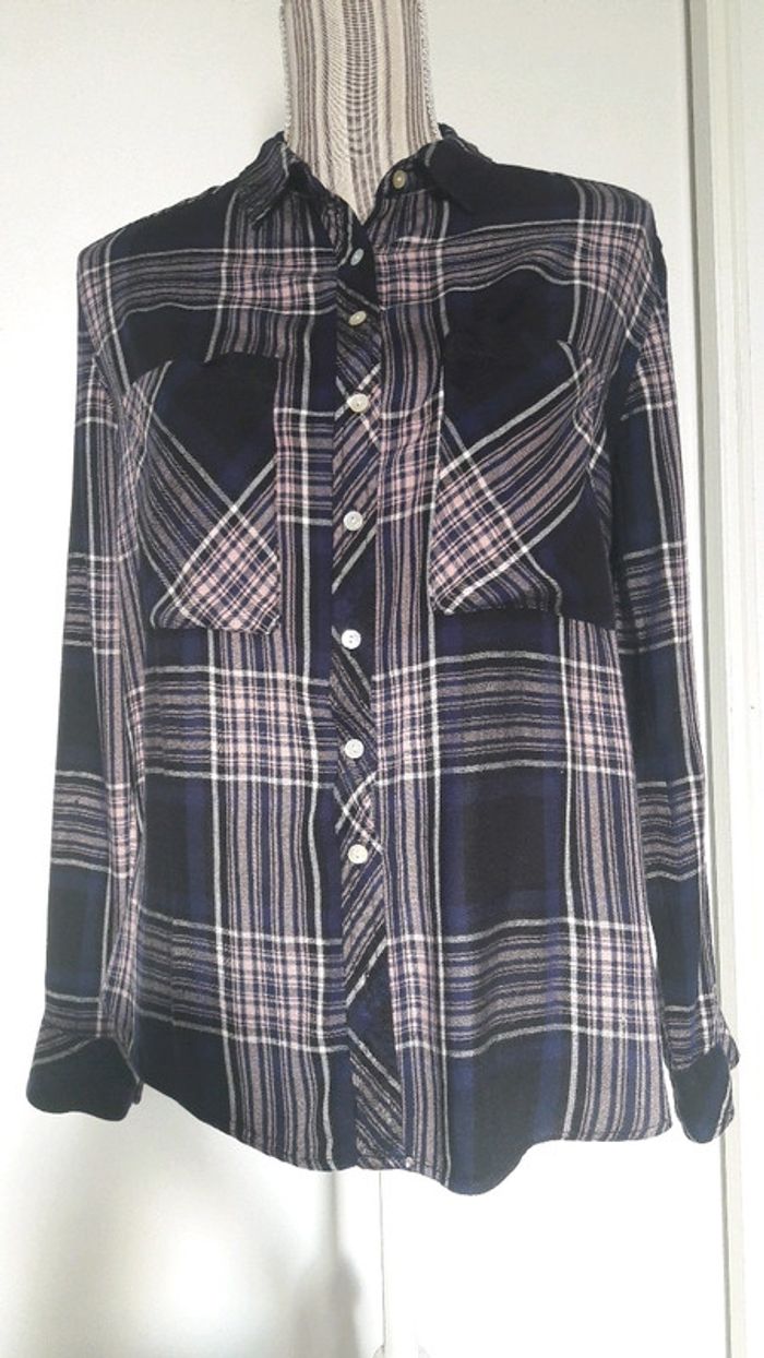 #mfemmeamandine2386 #38femmeamandine2386 #40femmeamandine2386 Chemise manches longues Tres bon etat Comme neuve Taille M Kiabi Coloris rose pale marine blanc et noir Modèle carreau Plus longue derriere 2 poches poitrine