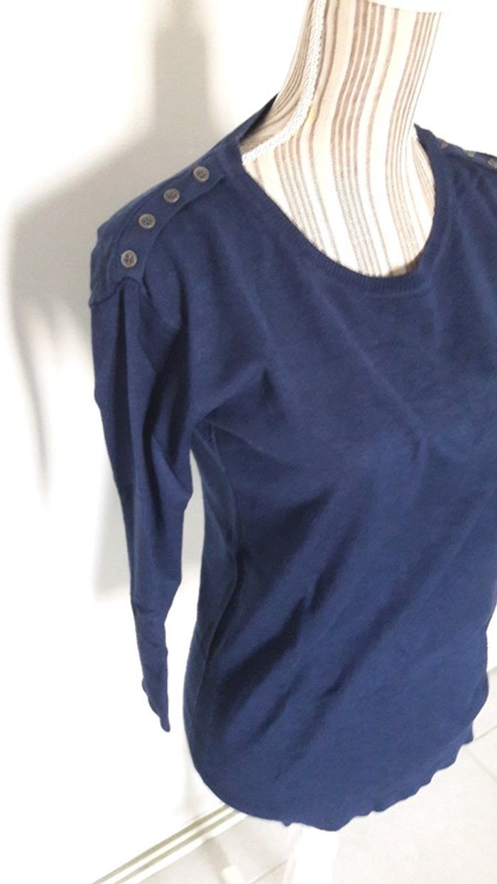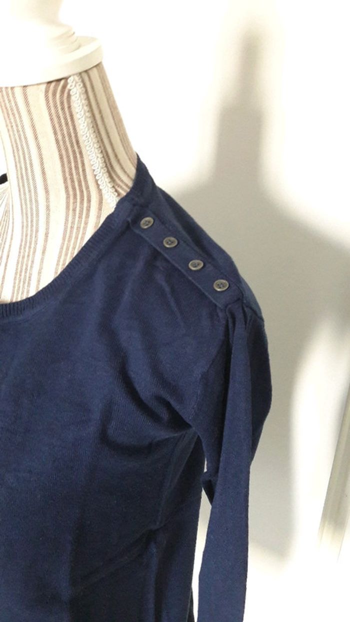 #lfemmeamandine2386 #40femmeamandine2386 Pull col rond Coloris marine fantaisie avec des boutons sur les 2 epaules Women Only Taille 3 Manches 3/4