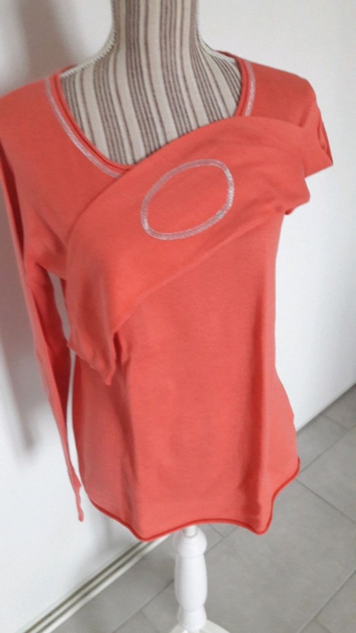 Pull Kiabi corail  et argenté 42 tres bon état - photo numéro 2