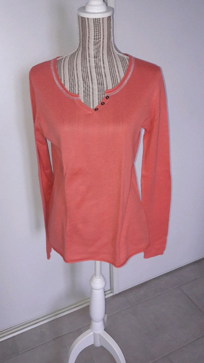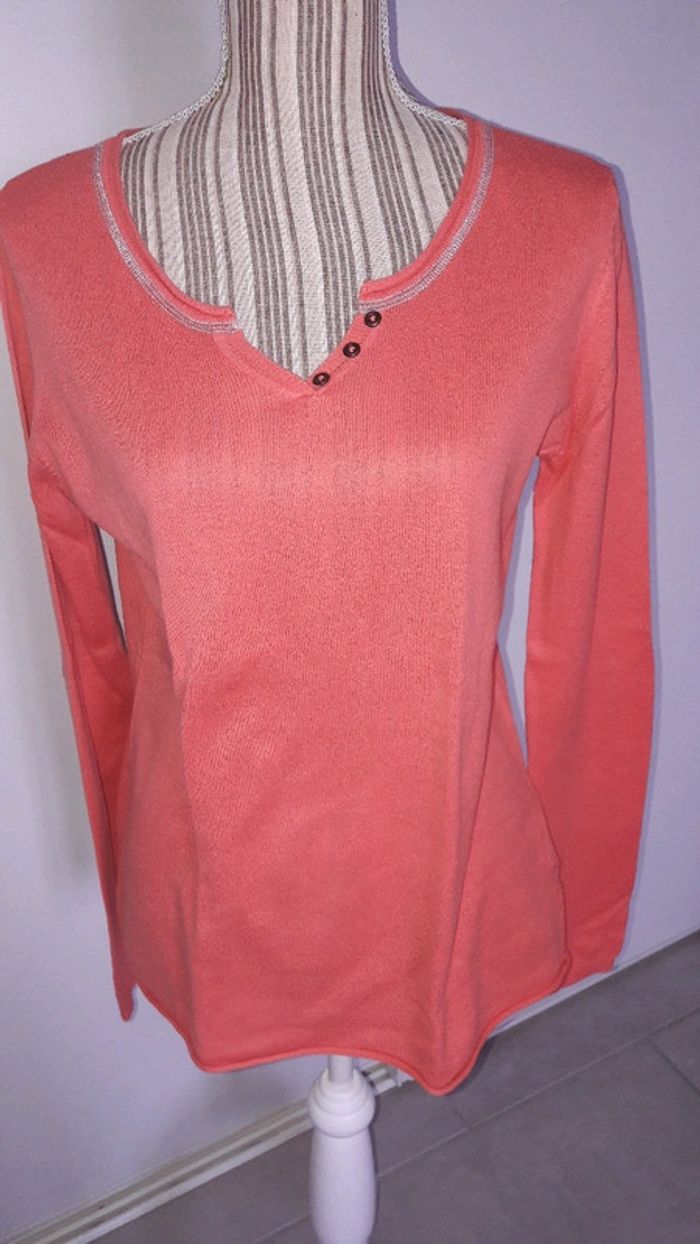 Pull Kiabi corail  et argenté 42 tres bon état - photo numéro 1