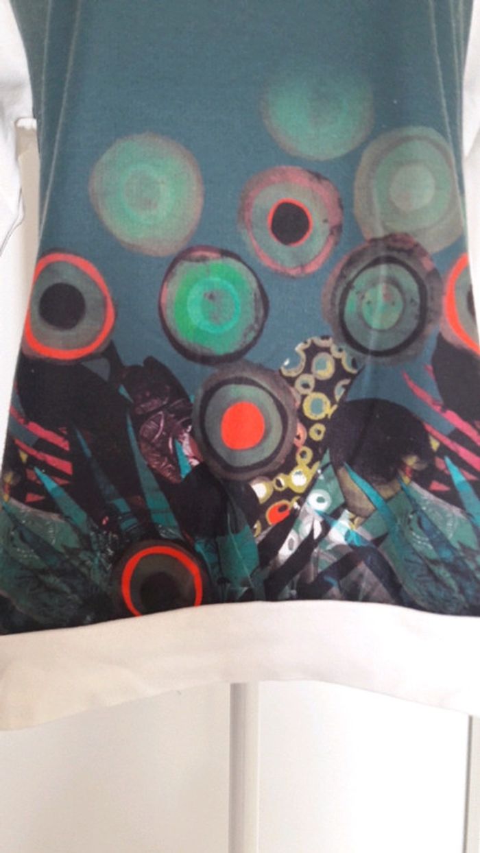 #lfemmeamandine2386 #40femmeamandine2386 Pull matiere sweat Taille L Ixoo De couleur blanc creme et devant multicolore à motif rond de couleur En bon etat Col bateau