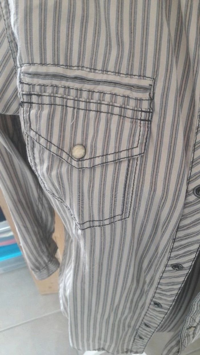 #shommeamandine2386 Chemise manches longues Taille S Marque kaporal Motor kaporal five brand Tres bon etat 100%coton Rayé beige bleu marron Fermeture pression