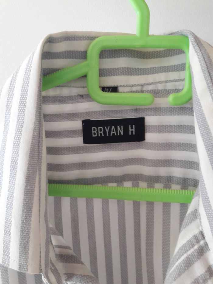 #chemisehommelamandine2386 #lhommeamandine2386 chemise manches longues rayée grise et blanche taille L (41/42) defaut sur photo jointe petits fils sortis