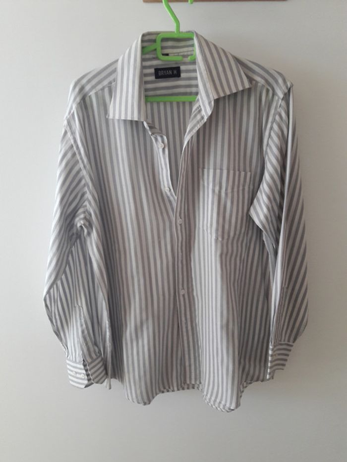 Chemise rayée grise et blanche manches longue - photo numéro 1