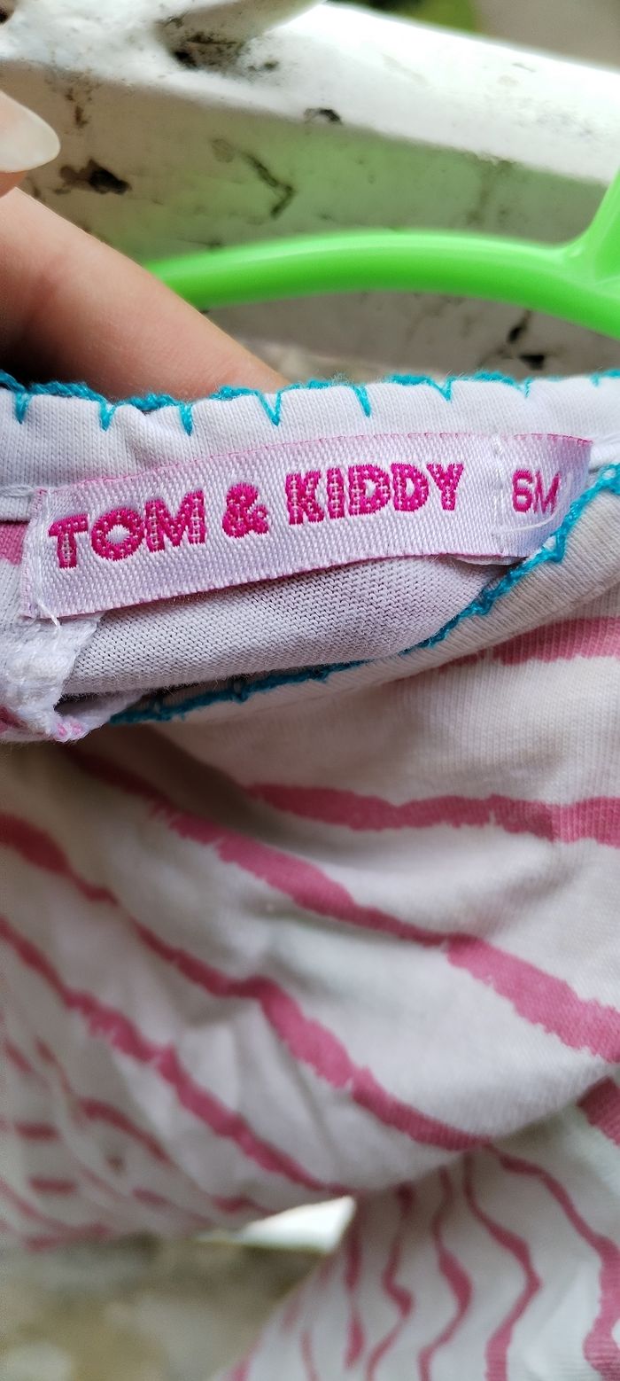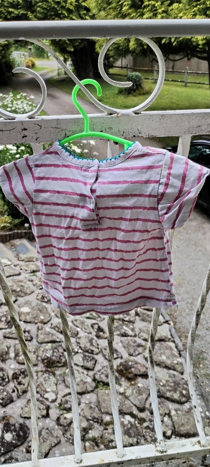 T Shirt à manches courtes à rayures blanc et rose pour fille. Marque Tom et Kiddy. Taille 6 mois. Comme neuf. Que mondial relais ou Relais Colis.