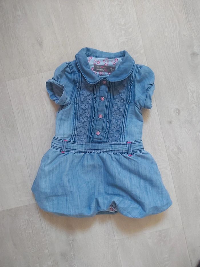 Jolie robe en jean et dentelle bleue Jupe doublée Orchestra 18 mois 81cm Fermeture pressions fleurs roses #annesolo22_fille18mois
