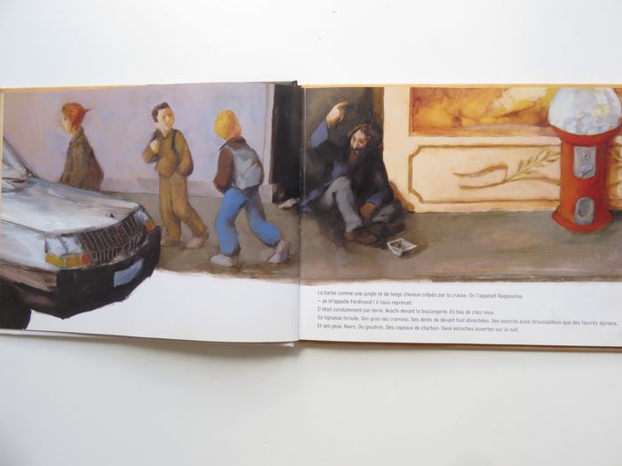 💰 PRIX FIXE quelque soit le nombre d'articles du dressing ⚠️ ÉTAT : Très bon état ⚠️ DÉTAILS : Couverture cartonnée ⚠️ RÉSUMÉ : Ferdinand, dit Raspoutine car il fait penser au célèbre personnage du même nom, est assis sur le trottoir, toujours à la même place. Il apostrophe les habitants du quartier, les regarde de ses yeux noirs et insondables, tend la main et s’en va tous les soirs dormir dans une vieille carcasse. Un jour pourtant, on ne le voit plus. Commentaire : Cet album décrit la vie quotidienne dans un quartier où pauvreté et tristesse côtoient solidarité et joie. Raspoutine, qui ne cesse pourtant de répéter qu’il s’appelle Ferdinand, est un SDF. Son portrait, dressé avec tendresse par un jeune garçon du quartier, nous révèle un homme attachant, qui râle, agresse ou boude, mais qui sait aussi rire et partager ; l’hommage rendu par le narrateur et ses parents sur sa tombe en témoigne parfaitement. 📦 LIVRAISON : Envoi ou remise en main propre sur Lyon