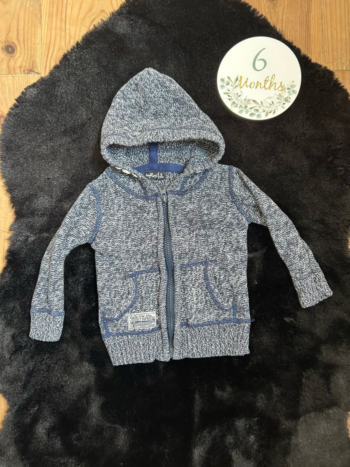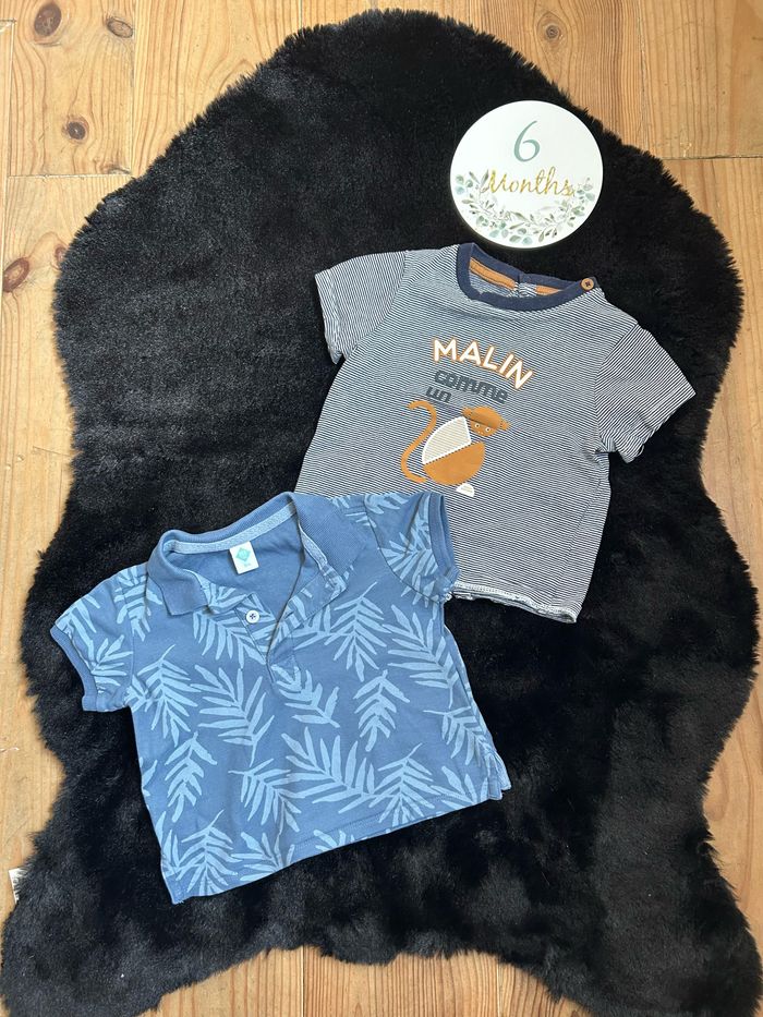 Ensemble de 4 pièces comprenant : 1 veste zip à capuche bleu chiné Influx avec 2 poches + 1 t-shirt manches courtes marinière « Malin comme un singe » Obaïdi + 1 polo bleu à motif TEX + 1 pantalon jean bleu Lot indissociable, le tout en parfait état, 6 mois 👍