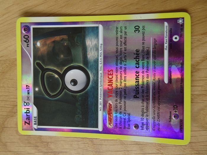 Carte pokémon zarbi brillante, année 2009, numéro 79/146