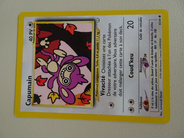 Carte pokemon capumain en état neuf, carte en français, années 1995 2000.
