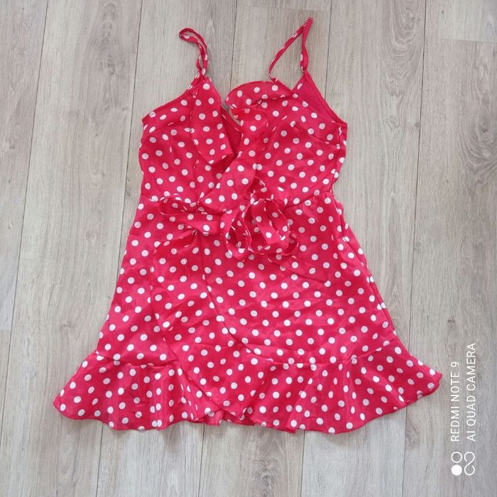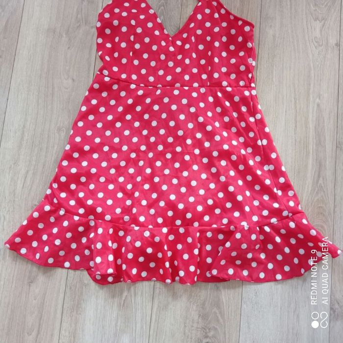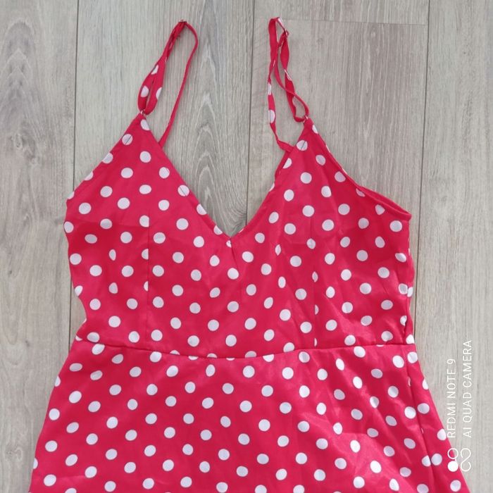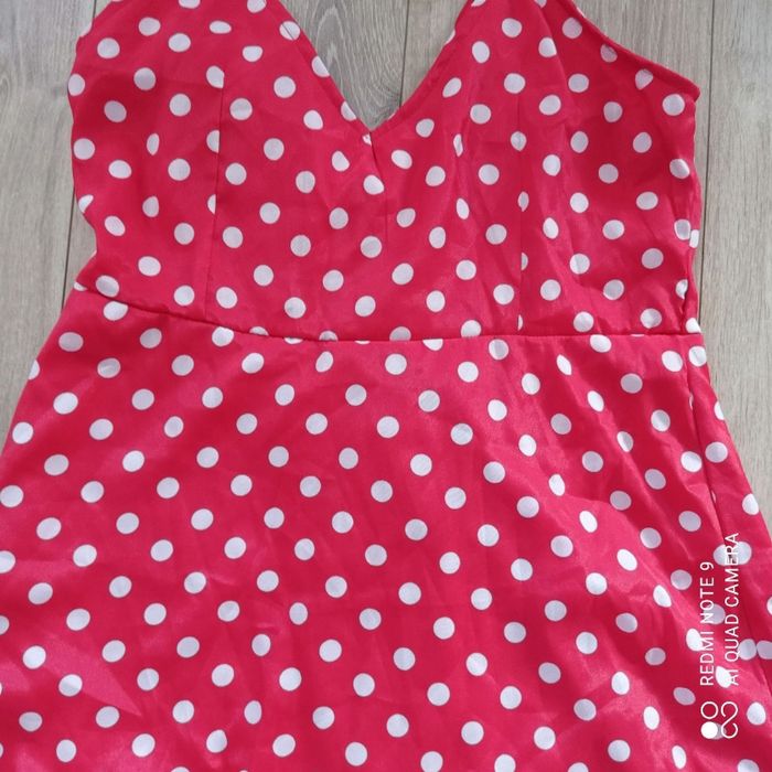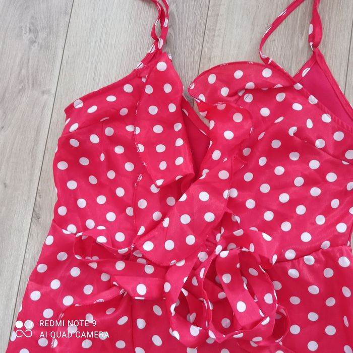 Très rétro pin-up. A fines bretelles réglables. A volants dans le dos. A nouer. Assez courte : 84cm. C2