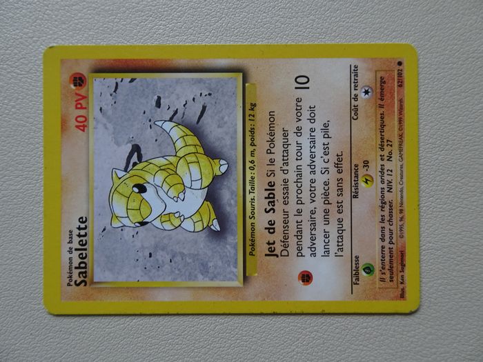 Carte pokémon sabelette, première génération, années 1995 96 98, nintendo, numéro 62/102.